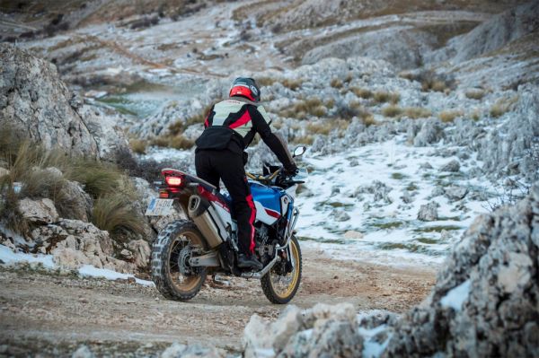 Első felvonásként az alapmodellt fogtuk vallatóra. Mivel már felmenője is csodásan teljesített, nehéz volt újat mutatnia, fejlődése leginkább a különféle menetüzemmódokat felkínáló motorvezérlésen és a lágyabb működésen érhető tetten. A változtatható gyújtástérképpel minden helyzetre pontos választ ad az amúgy is igen egzakt, célszerszám jellegű enduró, miként a tágabb tartományban szabályozható kipörgésgátlónak és a DCT-nek is megvannak a válaszai a különféle szituációkra. Bárhogy is, a bázisgép igazi mindenevő, akárcsak a második napon rivaldafénybe állított Adventure Sports. Jöhet autópálya, tükörsima szerpentin, hepehupás alsóbbrendű út vagy terep, egyszerűen sehol nem jön zavarba, s ezt bizonyíthatta is a több száz kilométeres dél-spanyolországi kör során. A mediterrán tavasz ellenére fagypont körüli hőmérsékletre ébredtünk, így aztán kapóra jött, hogy a szélesebb idomzat, valamint az alapáras kézvédő és markolatfűtés hatékonyan óvott a metsző hidegtől. Meglepő, de még sztrádán, 130-140 km/órával hasítva sem dideregtem, a zimankóban elegendő volt az aláöltöző és az enduróskabát, olyan parádésan védett a terebélyesebb burkolat és a nyolc centivel magasabb plexi. Hiába viseltem napjaink egyik legcsendesebb sisakját, már az első határozott gyorsítás közben feltűnt, mennyivel ércesebben zeng a kisebb, három helyett két kamrára osztott kipufogó. Ettől még tüzesebbnek érződik a 99 Nm-es csúcsnyomatékra hangolt sorkettes, holott már alapból is igen fickós: álló helyzetből alig négy másodperc alatt gyorsul százra és simán viszi a 200 km/órát.