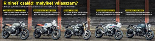 Ami az árakat illeti, a Pure a maga 4,2 milliójával az R nineT „ötösfogat” legolcsóbb tagja, míg a Racer 4,5 milliójával a második legdrágább. Az is tény, hogy a vetélytársakhoz képest a BMW-nek vastagabban fog a ceruzája, és bizony extrákra is elkölthetünk még sok százezret. Szóval nem olcsó mulatság egy retró BMW, de kiforrott és jól összerakott gépekről van szó, amelyeknek megvan a saját maguk jellegzetes sármja. Jó, hogy vannak még ilyen motorok!