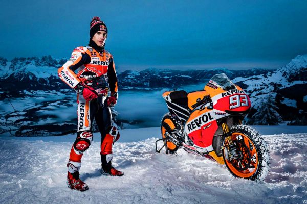 Minimálisan alakították csak át Marc Marquez háromszoros MotoGP-világbajnok Honda RC123-V típusú motorkerékpárját azért, hogy az jól viselkedjen a sípályán: szöges gumikat szereltek a slickek helyére, illetve terjedelmi okokból lemondtak az első sárvédőről is. Az átalakítást a jégmotorozásban már rutinos osztrák Franz Zorn végezte, aki összesen 483 szöget szerelt az abroncsokra.