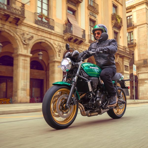 A Z650-eshez képest 50 mm-rel magasabbra és 30 mm-rel hátrébb került a kormány, a 820 mm-es ülésmagasság miatt pedig kisebb termetűeknek is könnyű a letalpalás. Az ülésmagasság mellett a mindössze 187 kg-os menetkész tömeg, illetve az egyenletes teljesítményleadású blokk is közrejátszik abban, hogy jelentős vezetői rutin nélkül se okozzon majd problémát a Z650RS terelgetése. Az újdonság hajtásáról a jól bevált 649 cm3-es, soros 2 hengeres gondoskodik, a 68 lóerős teljesítményt rövid áttételezésű, 6 fokozatú váltó segít beosztani. Bár a WMTC-szabvány szerinti 4,3 l/100 km-es fogyasztás igencsak kedvező, a modellt Economic Riding Indicatorral is ellátták. Ez annyit tesz, hogy egy külön lámpa jelzi a műszeregységen, amikor takarékosan vezet a motoros. Nem is baj, hiszen az üzemanyagtartálya mindössze 12 literes – sajnos alig van retrógép, amelynek tisztességes méretű lenne a tankja.