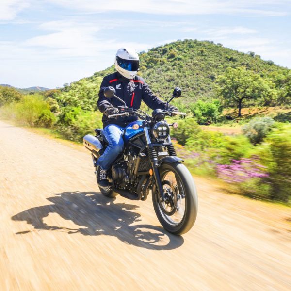 Amennyiben a gép méretéből indulunk ki, akkor egyértelműen ideális lehet azoknak a CL, akik most ismerkednek a nagymotorok világával. A 790 mm-es ülésmagasság miatt kisebb termetűeknek is leér a lábuk, a 192 kg-os menetkész tömeg miatt pedig szó sincs arról, hogy ijesztően nehéz lenne. Inkább azt éreztem, hogy a 190 centis magasságommal kicsit túlméretes vagyok ehhez a géphez, és bizony a rugóstag rendesen összeült a 90 kilós súlyom alatt. A motorozási élményt nagyban meghatározza a puha futómű (szerencsére könnyű az előfeszítést állítani hátul), és az akár egy ujjal is működtethető kuplung – utóbbi annyira finom szerkezet, hogy egy törékeny hölgynek sem okoz problémát a működtetése. Mivel a Honda arra törekedett, hogy a CL500-as rossz úton se jöjjön zavarba, az elöl 19, hátul 17 colos kerekekre Dunlop Mixtours abroncsokat húznak, amelyek alapvetően aszfaltra valók, de a mély barázdák miatt laza felületen sem véreznek el. A kis tömeg és a puha futómű miatt egészen sajátos, mókás élmény az újdonság terelgetése, a széles kormány miatt pedig szupermotós stílusban is lehet vezetni (elsősorban nem a testsúlyunkkal, hanem a kezünkkel döntjük a motort a kanyarba). És az erőforrás? A Honda sorkettese alapvetően kiegyensúlyozottan jár, magas fordulaton viszont jelentkezik némi vibráció, leginkább állandó 110-120 km/órás tempónál. 47 lóerős teljesítménye és kellemes hangja már alkalmassá teszi arra, hogy egy kanyargós úton igazi öröm legyen a terelgetése, miközben az erejével vagy teljesítményleadásával nem fogja a vezetőre hozni a frászt. Nem is hiányzik a kipörgésgátló, ugyanakkor aki a sportos vezetési stílust preferálná, az biztosan örül majd a csúszókuplungnak.