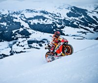 A MotoGP-világbajnok Marc Marquez most épp a kitzbüheli sípályákat hódította meg Honda RC123-V versenygépével.