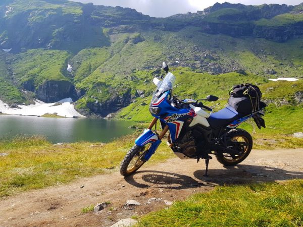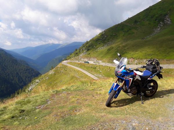 Az erdélyi túrán az Autó-Motornál tartós tesztprogramot teljesítő Honda Africa Twin volt a társam. Már az unalmasabb autópályás szakaszokon levett a lábamról az ergonómia és a tökéletes egyenesfutás. A szélvédelem 190 cm-es magasságomhoz megfelelő volt, ugyanakkor egy állítható szélvédőt hiányoltam egy ilyen kaliberű túramotorról. A hegyi szerpentinek alattomos úthullámait és keresztbordáit csak megmosolyogta a futómű, tűpontosan haladt tovább a kijelölt íven. Ahogy hajtűkanyarok labirintusában döntögettem, szegény sportmotoros társaim képe egyre csak zsugorodott a tükörben, itt volt igazán áldás a széles kormány és a nagy elfordulási szög. Kanyarokból kijövet a hosszú löketű sorkettes már alapjárattól erőteljes, miközben olyan hangon szól a kipufogó, mintha egy oroszlántól próbálnám elvenni a zsákmányát. Menetdinamika ide vagy oda, a fogyasztást nem sikerült 5,0 liter fölé vinni, ami mindenképp kedvező érték, főleg a 242 kg-os tömeget és a nehéz körülményeket figyelembe véve. A DCT-váltó finoman és gyorsan kapcsolt, egy-egy lámpától elrajtolásnál vagy terepezésnél hatalmas könnyedséget jelentett. Hajlamos azonban túl korán felváltani, amit nagy rázkódással ad tudtunkra a blokk. Visszafordítóknál kissé hezitált az egyes és kettes fokozat között, ami ideges gázvételt eredményezett, ilyenkor inkább kézzel avatkoztam be a kapcsolásokba. Hosszú lejtmeneteknél a fékek könnyen adagolhatók, és a nyomáspontjuk is határozott, de nem túl harapósak. Egy spontán beiktatott off-road szakasz során a 21 colos első kerék érezte az akadályokat, az ABS és a hétállású kipörgésgátló pedig észrevétlenül tette a dolgát. Itt nyert igazán értelmet a CRF modellnév, mely a Competition Race Fourstroke szavak rövidítése. Az Africa Twin sokoldalúságból jelesre vizsgázott!