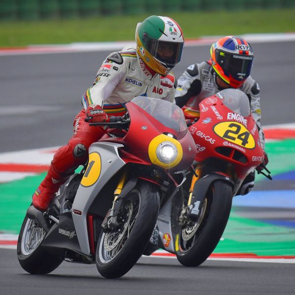 A misanói pályán megrendezett Amilia Romagna MotoGP futamon debütált a különleges motorkerékpár, Agostini ült a limitált gép nyergében, és mellette motorozott az MV Agusta jelenlegi Mopto2-es versenyzője, Simone Corsi.