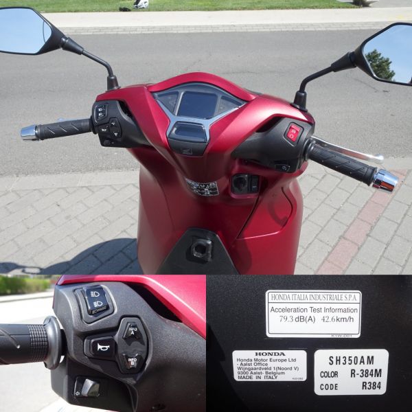 De kezdjük az elején. Ez a robogó a nagy kerekeivel, az eltalált fényezésével (ilyen szép mattpiros metál még nem sok van), a gondos, minőségi részletmegoldásaival bizalomgerjesztő. Látszik rajta, hogy a városi használat követelményeit messzemenően figyelembe vették a tervezéskor. Ez vonatkozik a felhajtható ülés alatti rakodóhelyre, a kulcs nélküli indításra, az elektromos záras hátsó dobozra, a teljesen felegyenesedett üléspozícióra (lásd: hokedli), tehát jól mutatják ezek a részletek a javasolt felhasználási területet. Ne felejtsük el, hogy az SH350i a néhány éve piacon lévő SH300i modell továbbfejlesztett utódja, és már az is hasonló jó tulajdonságokkal kényeztette vásárlóit. Az új azonban még rátett az előnyeire, még jobb lett.