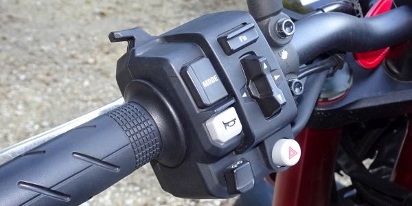 A motorkerékpáron e-gáz van, azaz nincs mechanikus kapcsolat a fojtószelep és a gázmarkolat között. Ez azt jelenti, hogy a markolat mozdítására – a választott karakterisztikának megfelelően – másképpen reagál a motor. Mindhárom paraméter három fokozatban állítható, ahogyan az a műszerfalon látszik is. A motorozási módok: