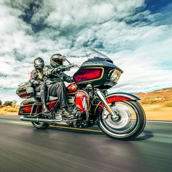 A valaha készült egyik legkülönlegesebb Harley a Road Glide Limited évfordulós verziója. Egyrészt a Heirloom Fade, sasmotívumos vörös-fekete fényezést kézzel viszik fel a Custom Vehicle Operation részleg gyártósorán, másrészt nettó 50 090 eurós árával ez a ma elérhető legdrágább Harley-Davidson. A külsőségeken túl sem éppen átlagos túramotorról van szó, komplett multimédia-rendszer, tempomat, fűtött nyereg és gyári dobozszett jellemzi. A modell hajtásáról a 117 köbinches, azaz 1917 köbcentis, V2-es gondoskodik. A 102 lóerős teljesítményre szükség is van, hiszen egy menetkészen 437 kg-os testet kell mozgatnia.