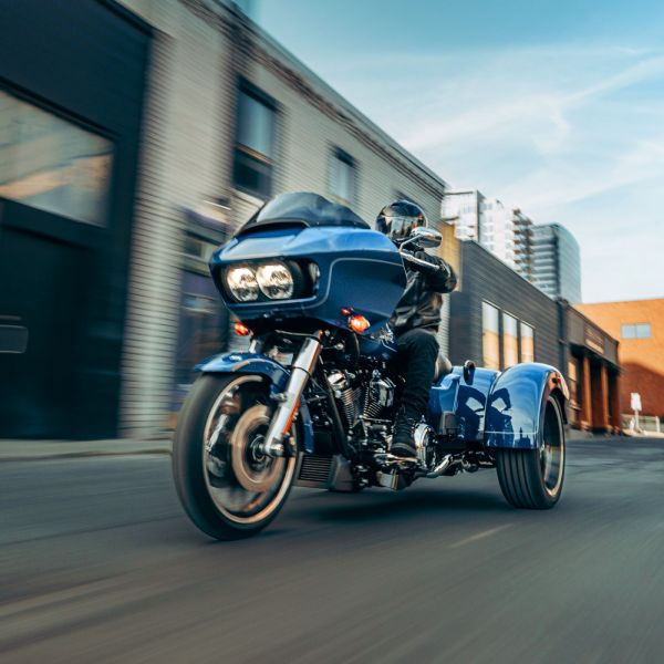 A Harley trike-jai meglehetősen nagy sikernek örvendenek az USA-ban, így logikus, hogy új modellt vezetnek be. A Road Glide 3-as a Freewheeler és a Tri Glide Ultra közé ékelődik a palettán, azonban fejidomával és farkialakításával is egyértelműen a sportosabb vonalat képviseli (az első kerék 19, a hátsók 18 colosak). Az 527 kg-os vasat magasan lévő kormánnyal irányíthatja a vezető, aki a klasszikus, analóg óracsoport mellett a 6,5 colos multimédiás kijelzőnek is örülhet. A hajtás feladatát az 1870 cm3-es, 90 lóerős V2-esre bízza a Harley-Davidson.