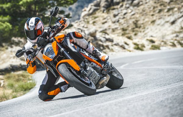 A pokolian combos, hatalmas V2-estől azt várná az ember, hogy erős rezonanciával dolgozik, elvégre az előd 990 cm3-es erőforrása nem éppen a kifinomult járásáról híres. Ehhez képest a Super Duke alapjárati vibrációi minimálisak, és gázadásra (ride-by-wire rendszerű) olyan kiszámíthatóan viselkedik, mint akármelyik sornégyes. Street módban annyira barátságos lesz az erőleadás, hogy kis rutinnal sem jelent problémát a terelgetése, hiszen a menetprogram nemcsak a gázvételt, hanem a kipörgésgátló beavatkozási szintjét is módosítja. A terhelésváltási reakciók sem vészesek, ha viszont beélesítjük a leginkább megengedő üzemmódot, igazi tűzijátékban lesz részünk.