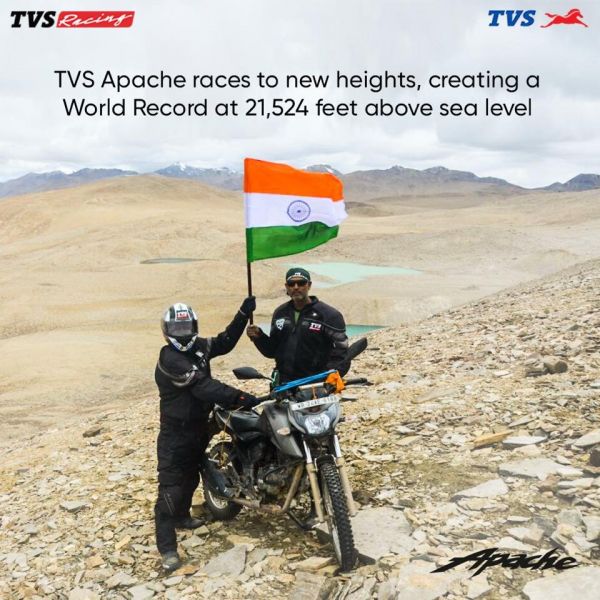 A North Calcutta Disha Motorcycling club hat tagja, Santanu Roychowdhury, Subrato Boral, Manas Sen, Achinta Saha, Indradeb Chatterjee és Srikrishna Biswas négy darab TVS Apache RTR 200 4V motorkerékpárral indultak a Himalájába, ahol a Rupshu völgyben érték el a rekord magasságot, megdöntve ezzel a korábban az Andokban elért 6471,8 méteres értéket. A TVS Apache RTR 200 4V motorkerékpároknál könnyűfém- helyett küllős felniket, terepabroncsokat használtak, és a felfüggesztést is áthangolták a rekordkísérletre.