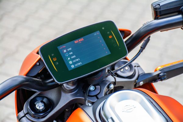 Ahogyan felültem a gépre, az első benyomásom az volt, hogy aktív az üléshelyzet, leginkább naked bike-okéhoz tudnám hasonlítani. Aztán megnyomjuk az indítógombot és máris üzemkész a gép, a potméterrel finoman adagolható az erő, ami azért fontos, mert a 105 lóerős villanymotorral olyat tud ugrani a 250 kg-os test, hogy bent marad a levegőnk. Nyomatékrugalmasság terén a hasonló teljesítményű, 800 cm3-es motorokat megeszi reggelire, és az alacsony súlypont miatt még azt sem lehet mondani, hogy esetlenül mozogna. Épp ellenkezőleg, úgy fordul, mint egyetlen más Harley sem, és ezekkel a Showa teleszkópokkal és a Brembo fékekkel még kanyarvadászatra is alkalmas. Nyilván össze sem lehet hasonlítani egy V2-es Harley-val a hangélményt, de egészen érdekes, ahogyan a villanymotor surrog, vagy hogy lámpánál állva nem sülünk meg a hőtermeléstől. A LiveWire nagy poénja viszont egyértelműen az alapjárati pulzálás. Amikor megállunk, időnként megmozdul az egész motor. Feltételezem azért, hogy ne egy rideg elektromos motort érezzünk magunk alatt, hanem egy élő, igazi Harleyt – ilyet is csak az amerikaiak tudnak kitalálni!