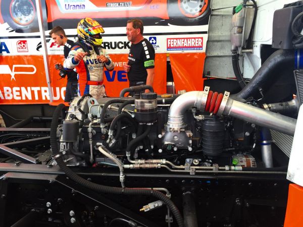 Amíg bekötnek, üdvözlöm a pilótámat és próbálom mondani neki, hogy nyomja, ahogy a csövön kifér, de nincs átbeszélő, így nem hallja. Őszintén szólva, csak utólag tudtam meg, hogy a mezőny egyik legtapasztaltabb pilótája, az 54 esztendős Gerd Körber a sofőröm, aki 1991-ben az akkori C-osztályt, majd 2002-ben és 2003-ban a Kamion Európa-kupát is megnyerte. Becsapják az ajtót és intenek, hogy indulhatunk, az 5,3 tonnás Iveco Stralis pedig szép komótosan kigördül a boxutcából. A kamionversenyen azért nincs is állórajt, hogy a maximum 13 literes, lapostányér méretű turbóval lélegeztetett motorok cirka 1100-1150 lóereje és közel 5000 Nm-es forgatónyomatéka ne tépje szét a 16 fokozatú váltót, a féltengelyeket és a többit. Ahogy kiérünk a pályára, Körber becsülettel odalép, s hegyomlás módjára megindul a gép. Miközben hörög és fújtat, bődületesen nagyot lép ez a legalább 2,5 méter magas, emeletes monstrum, majd a célegyenes végéhez érve ízelítőt kapok a combos légfékek erejéből: a vízhűtéses rendszer brutálisan lassítja, papíron a 160 km/órás csúcssebességről 100 méteren belül megállítja a vontatót. Persze korlátozás nélkül tudnának ezek a gigászok 220-al, mások szerint 280-nal (sőt, Kiss Norbi honlapján 302 km/h szerepel) is repeszteni, de nem kell ecsetelni, hogy micsoda pusztítást tudna végezni, ha elszabadulna egy ekkora test és tömeg… Úgyhogy jobb a békesség, és a szabályok szerint egyhuzamban 2,8 másodpercig szabad túllépni a 160-as tempót. Egyébként a célegyenesre fordulva, a kigyorsítás után elég hamar elérjük az elektronikus sebességkorlátot, és furcsa érzés, hogy a tiltás után rendszeresen „visszaránt”.