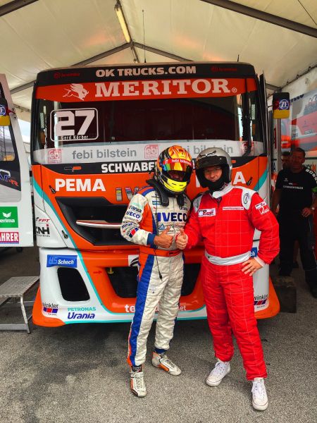 A kamion Európa-bajnokság hungaroringi fordulóján Tóth Anita sajtófőnök és a Just Creative médiaügynökség vezetője, Klein Péter jóvoltából most újra felidézhettem az emlékeket. Persze a történet akkor lenne teljesen kerek, ha ezúttal a kétszeres Európa-bajnok Kiss Norbi mellé, a Mercedes-Benz versenykamionba sikerülne beülni, de a nagy népszerűség okán mások is erre utaznak, a „nagyon VIP” vendégeket pedig előretessékelik a sorban. Türelmesen várok, de idővel rám pirítanak, hogy ha nem akarok lemaradni a programról, akkor fáradjak egy másik kamionhoz. A Team Schwabentruck csapat 27-es rajtszámú fehér-narancssárga Iveco kamionja éppen begördül a boxutcába, s amikor a kolléga kiszáll, az odakészített kis fémlépcsőről felkapaszkodok a szokatlanul tágas vezetőfülkébe. Persze versenytechnikához híven ezt is alaposan kibelezték, becsövezték és telepakolták egy halom kapcsolóval.