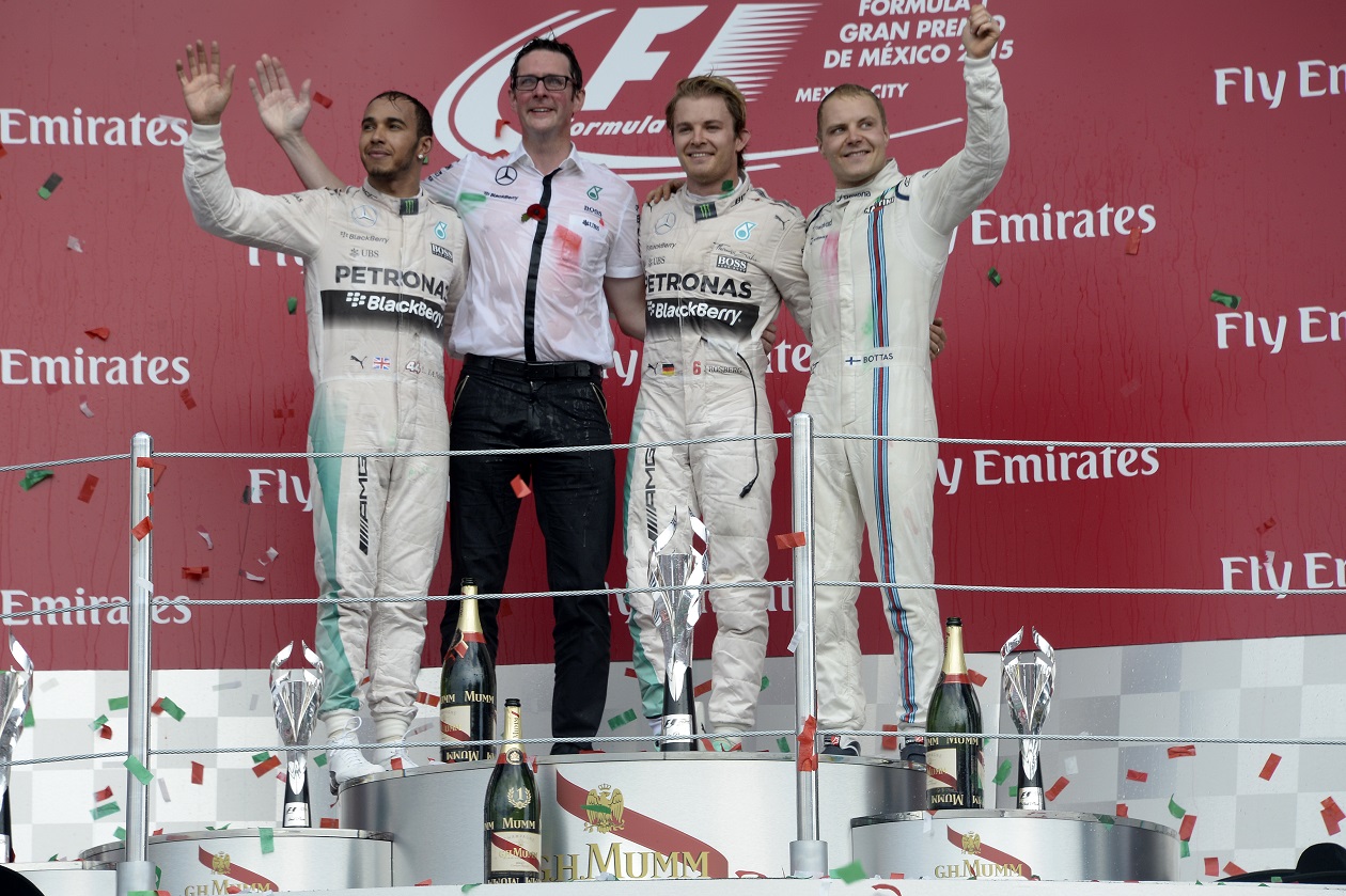 Nagyon nagy sikernek örvendett a mexikóvárosi pálya, annak ellenére, hogy a debütáló futam nem hozott mozgalmas versenyt. A problémamentes lebonyolításnak persze a szervezők örülhettek, s az újdonság varázsának hatása alatt a rajongók sem maradtak élmények nélkül. Sokak véleménye az volt, hogy nagyon jó, hogy Mexikóváros ismét felkerült a Forma-1-es térképre. Bár a 2015-ös év nem Nico Rosberg éve volt, azért egy-két győzelmet sikerült elcsennie világbajnok csapattársa orra elől. Ez így volt Mexikóban is. Az első győzelmet a Mercedes német pilótájának sikerült behúznia. A Forma-1-es versenynaptárba 23 év után visszatérő futam dobogójának tetejére ő állhatott, s Hamiltonnak csak a második hely jutott. A két Ferrari kiesett, a bronzérmes helyezés Valtteri Bottasé lett. Mindhárman két bokszbeállásos stratégiára váltva állhattak dobogóra.