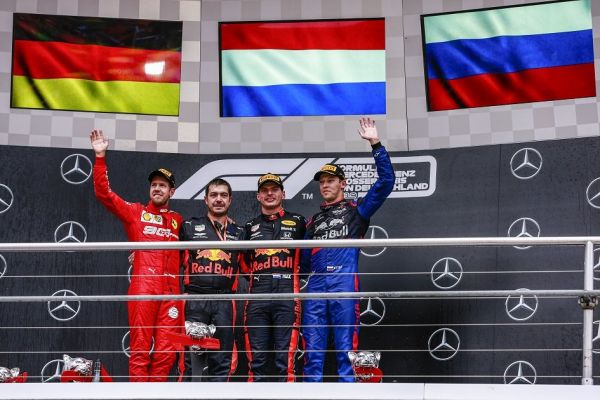 Ez a verseny a slick és intermediate gumik jó időzítésén múlott. A legjobb munkát pedig a Red Bull végezte. Max Verstappen nagy – narancssárgába öltözött – rajongói tábora előtt Ausztria után ismét az élre vitte célba autóját. Ráadásul a leggyorsabb körért járó egy pontot is begyűjtötte a fiatal holland. A Red Bull felemás hétvégét tudhat magáénak, de az nem Pierre Gasly hibája, hogy kiesett. Az egyébként briliánsan versenyző Alex Albon nagy igyekezetében, hogy egyre feljebb jusson, rázárt Gaslyra, s összeértek a kerekek. Gasly autójának bal első kerekén levált a gumi, s félre kellett állnia, feladva a futamot. Nem véletlenül igyekezett annyira a Toro Rosso pilótája. Felismerte, hogy egy ilyen versenyen bármi megtörténhet. Akár ő is állhatott volna a dobogón, Kvjat helyén.