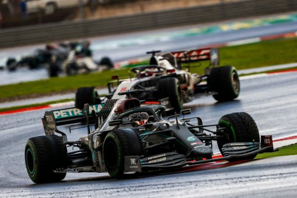 Ez volt az a verseny, amelynek egyetlen részét is kár lett volna kihagyni. A verseny elején a sorrend ugyanis nagyon más képet mutatott azzal, ami végül a végeredmény lett. Az abroncsokkal való trükközés a tükörsima aszfalton váratlanabbnál váratlanabb fordulatokat hozott. A futam elején a Mercedes-szek gyengélkedtek, s abban lehetett reménykedni, hogy ezúttal teljesen felfordul a sorrend és szokatlan arcokkal találkozhatunk majd a dobogón. Ahogy száradt a pálya, úgy kezdett papírforma kialakulni. A Racing Point a 37. körben behívta Strollt a bokszba kerékcserére, s ekkor bár Perez egy ideig vezette a futamot, Hamilton könnyedén kielőzte őt a DRS segítségével és a verseny során először került az élre. Stroll ezután már nem tudta magát visszaverekedni oda, ahol Hamilton kibérelte a helyét.