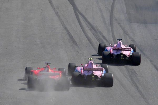 Miközben Hamilton stresszmentesen vezette végig a futamot, Vettelnek már a rajtja sem volt problémamentes. Összeért Max Verstappen autójával, s a Ferrari első szárnya megsérült, ami miatt korán be kellett mennie a bokszba. Verstappen sem járt sokkal jobban, autójának akkumulátorának hibás működése miatt le kellett parkolnia a pálya szélén, s ez volt az a pillanat, amikor is Valtteri Bottas megszerezte a második helyet. A finntől innen kezdve már nem lehetett elvenni az ezüstérmes helyezést, így a nagy harc a harmadik helyért folyt. Daniel Ricciardo, Sergio Perez, Esteban Ocon és Sebastian Vettel volt az a négyes, amely az utolsó dobogós helyért küzdött. A dráma a Force Indián belül zajlott. Sergio Perez ment elől és tapasztalatlanabb csapattársa mögötte. Ocon bár hátul ment, de frissebb gumikon, így le tudta volna hagyni Perezt és a francia elmondása szerint Ricciardót is. Bár a csapat virágnyelven kérte a mexikóit, hogy engedje el társát, neki esze ágában sem volt. Mondta, ha akarja, előzze meg őt Ocon. Perez inkább megnyomta a tempót és megpróbálta maga megelőzni az előtte haladó Ricciardót.