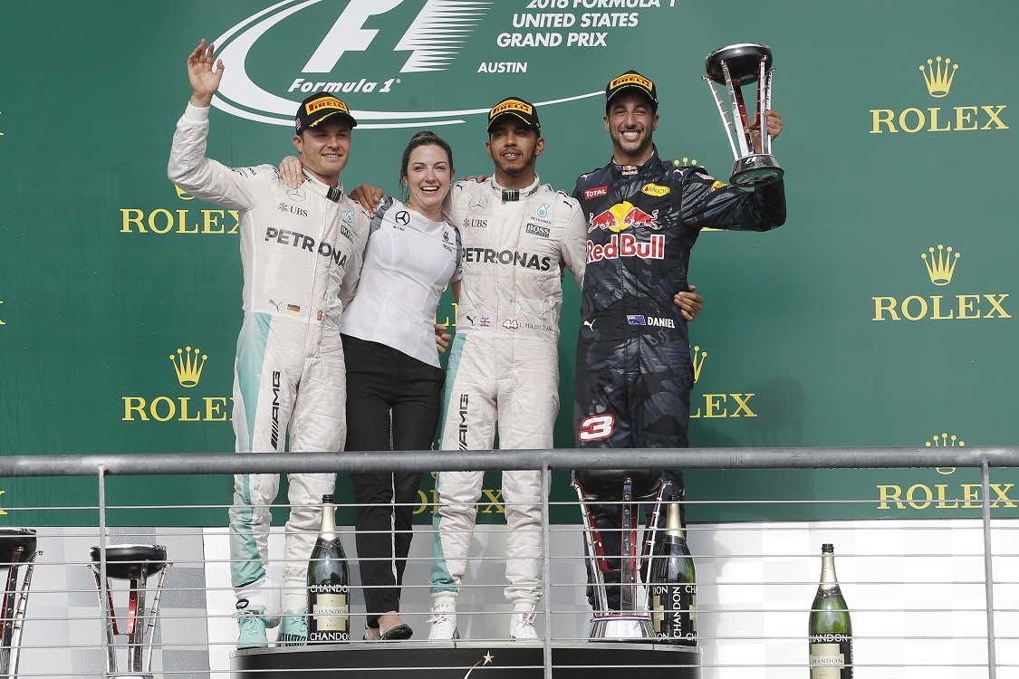 Hamilton végig a kezében tartotta az irányítást a vasárnapi USA Nagydíjon. Rajtcél győzelemmel ért célba, s ezzel 50. Forma-1-es elsőségét ünnepelhette a COTA pályán. A nyári szünetet követően ez az első győzelme a Mercedes pilótájának, így nagy megkönnyebbülést jelentett ez számára. Hamilton legnagyobb riválisa, Nico Rosberg ezúttal is csak második lett, akinek immár harmadik alkalommal sikerült ez a negatív bravúr ezen a pályán. Hamilton 26 pontra csökkentette hátrányát az egyéni világbajnokságban úgy, hogy még három futam van hátra. Közel sincs lejátszva a világbajnoki címért folyó küzdelem, Rosberg a következő futamokon előnybe kerülhet.
