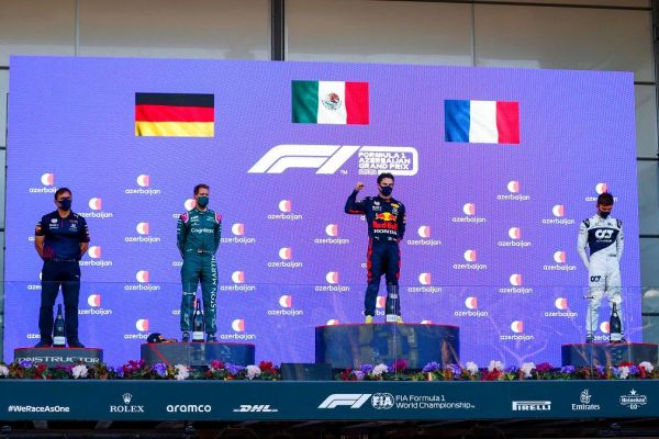 “Nagyon boldog vagyok ma. Általában Baku egy őrült futam, és sajnálom Maxot. Ma megérdemelte volna a győzelmet, s fantasztikus eredmény lett volna a csapatnak, ha kettős győzelmet szerzünk. Szerencsések vagyunk, hogy célba értünk, elég nehéz volt elérni odáig. Nagyon jó tempója volt (Hamiltonnak) az egész verseny során, minden egyes körben a nyakamba volt a bokszbeállást követően. Az ismételt rajt során nem jól rajtoltam és Hamilton elém került, de próbáltam szélesen venni a kanyart, miközben Hamiltonnak nem sikerült. Ez nyilvánvalóan nagy önbizalomnövelő nekem is és a csapat számára is.” – nyilatkozta boldogan a versenygyőztes mexikói.