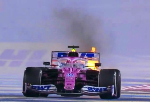 Az 57 körös futam rajtját követően Romain Grosjean autójával hozzáért Danyiil Kvjat AlphaTaurijához, emiatt kivágott a pálya jobb szélére és a szalagkorlátba csapódva autója azonnal lángba borult. Egy jó ideig nem lehetett tudni, hogy mi történt és mennyire súlyos volt a baleset. Egy kis idő múlva, miután kiderült, hogy jól van a pilóta, láthattuk, hogy Romain Grosjean autója gyakorlatilag kettétört. A lángoló autóból menekült ki a francia pilóta és a sérült korláton keresztül mentette az életét. Több helyen megégett a keze és a könyöke és valószínűleg néhány bordája is eltört. A sokáig utált Halo fejvédő mentette meg a 34 éves pilóta életét.