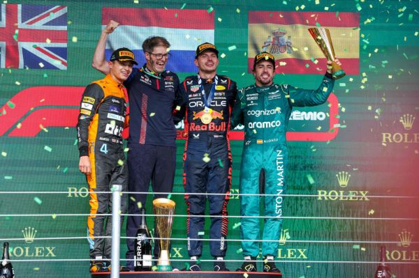Max Verstappen újabb sikeres hétvégét tudhat magáénak a Sao Paulói Forma-1-es Nagydíjon, ahol mind a szombati sprint, mind a vasárnapi főfutam győzelmét megszerezte. A főfutam sorrendje majdnem megegyezett a sprintével, hiszen a második helyen Lando Norris ért célba mindkét megmérettetésen. A dobogó harmadik helyén álló pilóta személyében van változás. A sprintet Sergio Perez nyerte, de a főfutamon Fernando Alonsóba beletört a bicskája. Az Aston Martin pilótája keményen tartva és visszavéve Pereztől a harmadik helyet, végül célba vitte méregzöld autóját a bronzérmes helyen.