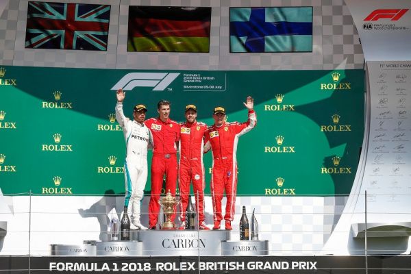 A Brit Nagydíj rajtja nem alakult simán. Sebastian Vettel az élre tört, mögötte pedig Kimi Raikkönen és Lewis Hamilton autója összeért, s a brit visszaesett a mezőny végére, miközben Raikkönen pár pozíciót vesztett, s a Red Bullok mögé esett vissza. A Mercedes meg is sérült, de a bokszba nem ment ki. Raikkönen autója látszólag sértetlen maradt, de a finn később tíz másodperces büntetést kapott. Kimi Raikkönen idén fiatalkori önmagára emlékeztető módon versenyez, a motivációját láthatóan visszanyerte. Már a Hamiltonnal vívott balesete is a nagy igyekvés eredménye volt, később pedig Max Verstappennel játszott csiki-csukit, hol az egyik előzött, hol a másik.