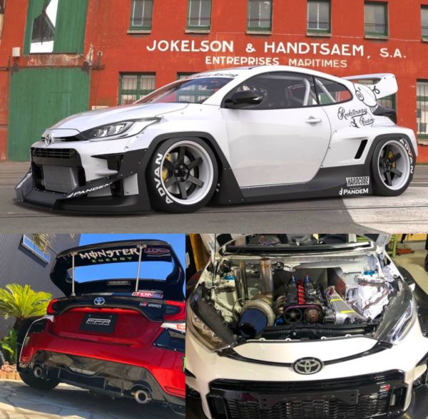 Rendhagyó lett a legforróbb Yaris, hiszen a januárban bejelentett GR Yaris 1,6 literes háromhengeres turbómotort kap 261 lóerővel, hatfokozatú kézi kapcsolású váltóval és összkerékhajtással. Ez mind szép és jó, de egy driftautónak hátsókerékhajtás kell, így a japán Daigo Saito már szét is vágott egy példányt, hogy a csöppnyi motortérbe a Suprából származó 2JZ kódú soros hathengeres blokkot beépítse.