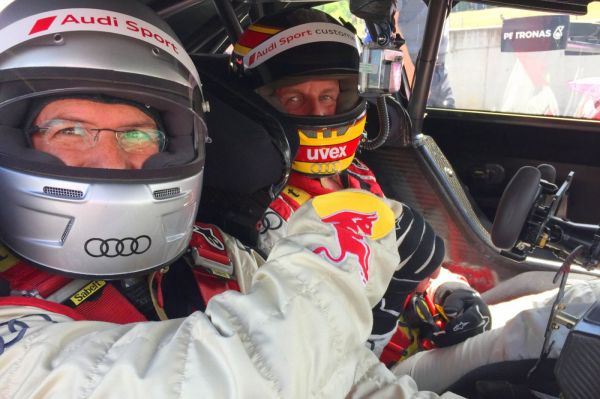 Nos, amíg a taxit egy quaddal kivontatják a boxutcába, sorstársaimmal együtt aláírjuk az ilyenkor szokásos felelősség-vállaló nyilatkozatot és átöltözünk tűzálló overálba. Némi nyugalommal tölt el, hogy még az olyan sokat próbált és edzett élsportolók, mint Gyurta Dániel és Miklós Edit is pont úgy izgulnak, mint én az átlagember. Persze a lelkem mélyén tudom, hogy nincs miért parázni, hiszen kiváló kezekben leszek. Taxisofőrünk ugyanis nem más, mint az 1991-es DTM és 1996-os BTCC bajnok, illetve ötszörös Le Mans-i 24 órás és négyszeres 12 órás Sebring győztes Frank Biela! Mégsem tudok nyugalmat erőltetni magamra, a kezem és a térdem finoman remeg. Amikor szólítanak, hogy ideje felvenni a tűzálló maszkot, a bukósisakot és a HANS nyakvédőt, már nincs visszaút. Akkor hajrá!
