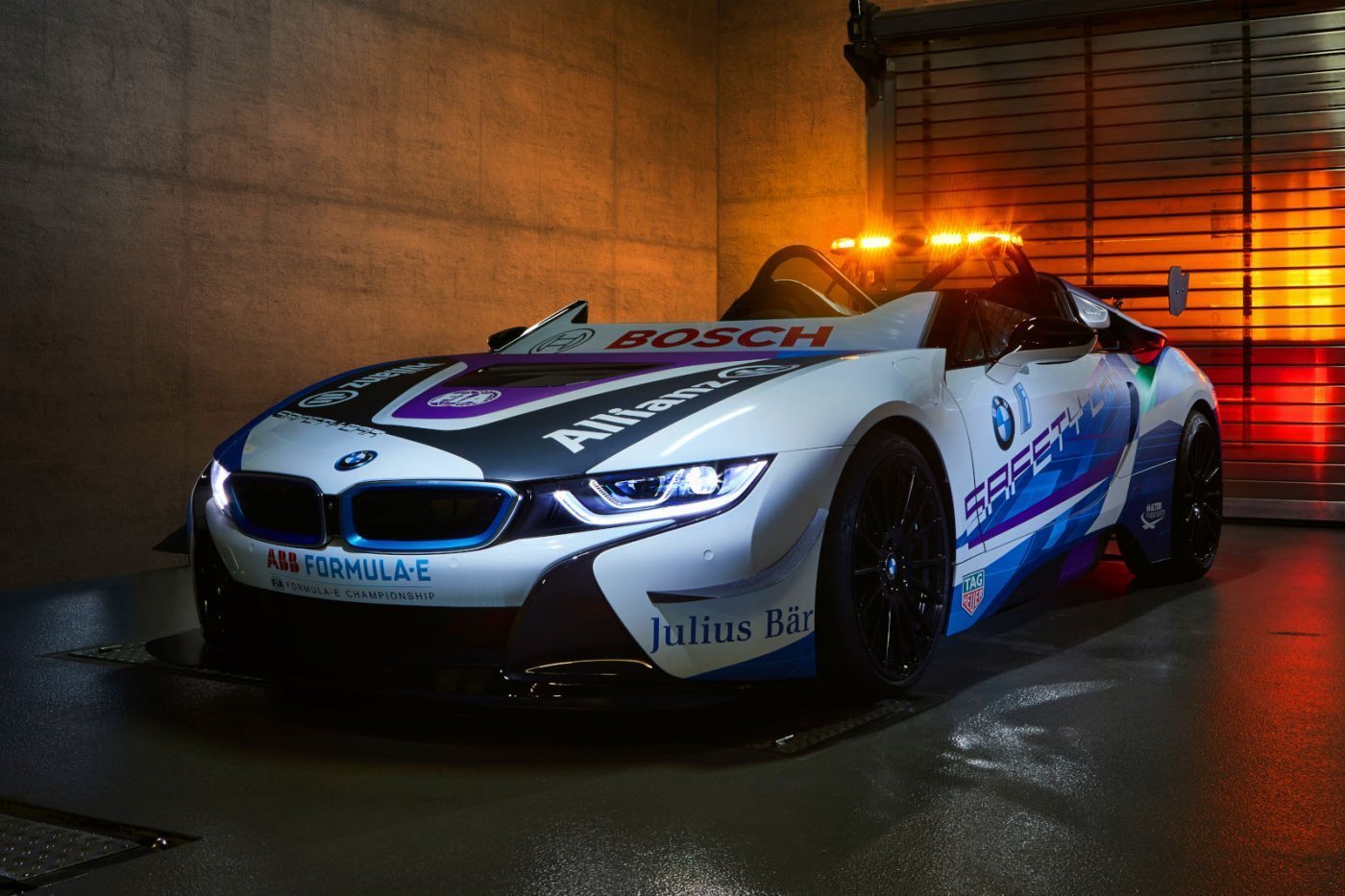A Formula E világbajnokság hivatalos autós partnere, a BMW egy új felvezetőautót mutatott be a Monaco ePrix előtt. A BMW i8 Roadster Safety Car annyiban különbözik az utcai autótól, hogy eltávolították a szélvédőjét, ezzel ez lett a világ első, nyitott utastérrel rendelkező felvezetőautója.