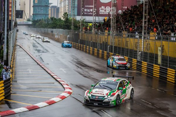 Eső köszöntötte a csapatokat Makaóban, ami egyben volt jó és rossz hír a világbajnoki címért harcoló magyar pilótának. Egyrészt a Honda korábban erős teljesítményre volt képes a szezonban vizes aszfalton, másrészt a normál körülmények között is balesetveszélyes makaói pályán a biztonsági autó mögül rajtolt el a mezőny, amivel elszállt Michelisz talán legjobb esélye a pole pozícióból induló Rob Huff megelőzésére a szűk utcai körön.