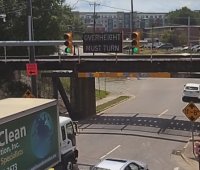 Már tényleg mindent bevetnek, a híd környékén nagyjából tíz tábla és különböző figyelemfelkeltő jelzés mutatja, hogy ha magasabb az autód ennél, ne hajts be!