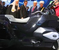 Megmutatták azt az Izs motorkerékpárt, amelyet a Kalasnyikov cég fejleszt az orosz elnöki limuzin kísérőjárművének.