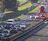 A felvétel jól példázza, hogy miért fontos a szalagkorlát mögött várakozni, ha műszaki gond támadna az autóval.