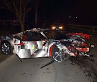 Sinsheim közelében, egy autós közúti balesetben semmisült meg a Ferrari cég teljesen álcázott prototípusa.