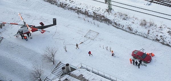 Helikopterrel emelték egy toronyház tetejére az új Bentley Continental GT V8-ast Münchenben.