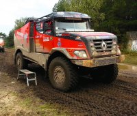 Elegánsan száguldanak a sivatagban a Dakar versenykamionok, európai földúton kicsit rázósabb az élmény.