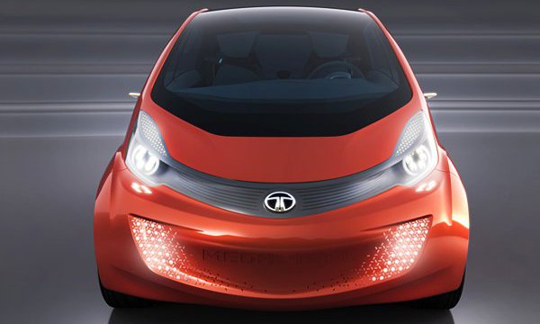 B oszlop nélküli városi elektromos autó a Tata Megapixel – négy tolóajtóval.