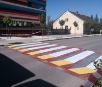 Egész napos útlezárás mellett festették fel a dorogi sportcsarnok melletti zebrát, a városi Baleset-megelőzési Bizottság kezdeményezésére.