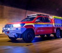 A brit Prospeed által épített 6x6-os Toyota Hilux olyan helyeket is meg tud közelíteni, ahová a hagyományos tűzoltóautók nem tudnak eljutni – például parkolóházakba.