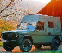 A svájci hadsereg számára készült 1993-ban ez itt látható Puch G-osztály, amelyből igazi expedíciós járművet faragtak a tuningcég munkatársai.