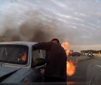 A szemük előtt sodródott ki és gyulladt meg egy autó, tele utasokkal – VIDEÓ
