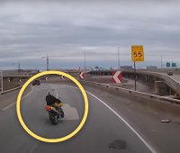 Se jogosítvány, se gyakorlat, ez lett a vége: leugratott a felüljáróról a motoros – VIDEÓ