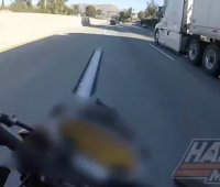 Elképesztő, hogy ezt túlélte a motoros: átcsúszott egy kamion alatt! – VIDEÓ