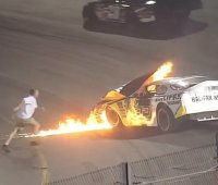 A pályára rohant verseny közben, hogy kiszedje az égő roncsból a fiát – VIDEÓ