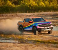 Very Gay Raptor névre hallgat az aranycsillámos fényezésű, szivárványmintával díszített Ford Ranger Raptor, ami a Goodwood FoS-on az LGBTQ+ közösségre hivatott ráirányítani a figyelmet.