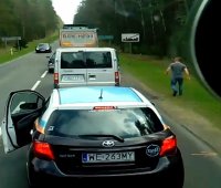 A kamionos nem volt boldog az ablakból kidobált dobozoktól. És ezt finoman jelezte is…