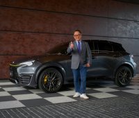 A márkaigazgató Luca Napolitano próbálja ki a Lancia jövőbeli termékeit megelőlegező Pu+Ra tanulmányt.