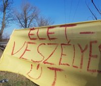Rögtönzött transzparens figyelmeztet a 441-es főút állapotára