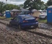 A Mitsubishi Evo beragadt a sárba, a kipufogójánál akarta kihúzni… – VIDEÓ