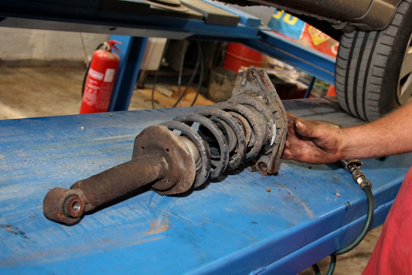 Jó példa erre az elhanyagolós típusú használatra az ismerős szervizünkbe betévedt „covidvizsgás” Nissan Almera. Látszatra a kocsi egy normálisan tartott autó volt, a rendszeres mosás és porszívózás azonban nem jelent karbantartottságot. Az ellenőrzés során feltűnt, hogy a hátsó lengéscsillapítók csereérettek, így emelőre került a kocsi a rossz tubusok kiszerelésére. A meglepetés ekkor jött, mert kiderült, hogy a már koros autóban még az eredeti gátlók dolgoztak!